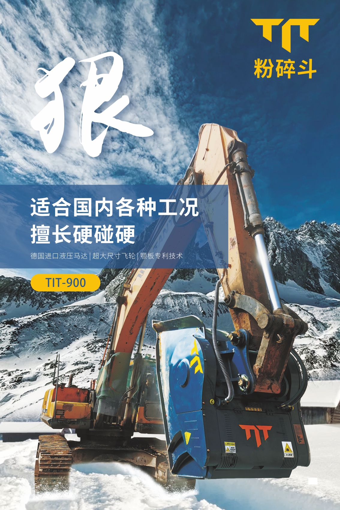 TIT,源自Titan的縮寫,原指古希臘神話中力大無窮的威猛之神,借意本產(chǎn)品剛勁有力,產(chǎn)能高效。TIT粉碎斗,也稱破碎斗,顎式破碎斗,是一款創(chuàng)新型挖掘機屬具,掛于挖掘機大臂上,可快速將工程惰性材料破碎成極具價值的工程用料。隨著國內(nèi)基建行業(yè)展,基于市場對經(jīng)濟化、效率化、環(huán)保化材料的大量需求,破碎斗將廣泛應用于多種物料破碎場景。 |